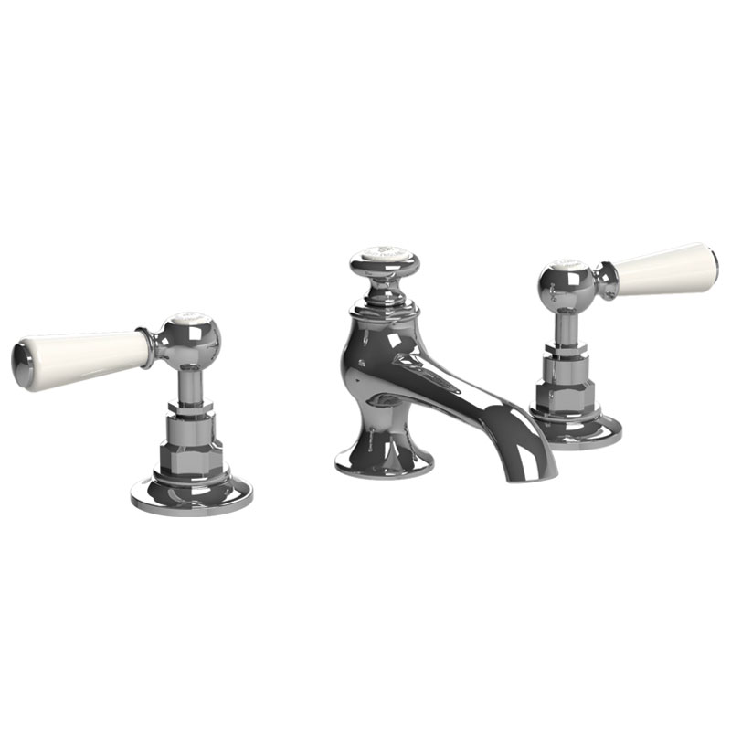 White lever Connaught 3-hole basin mixer with pop-up waste