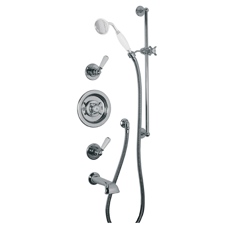 Archipelago thermostatic bath and shower valve with sliding rail and shower kit
