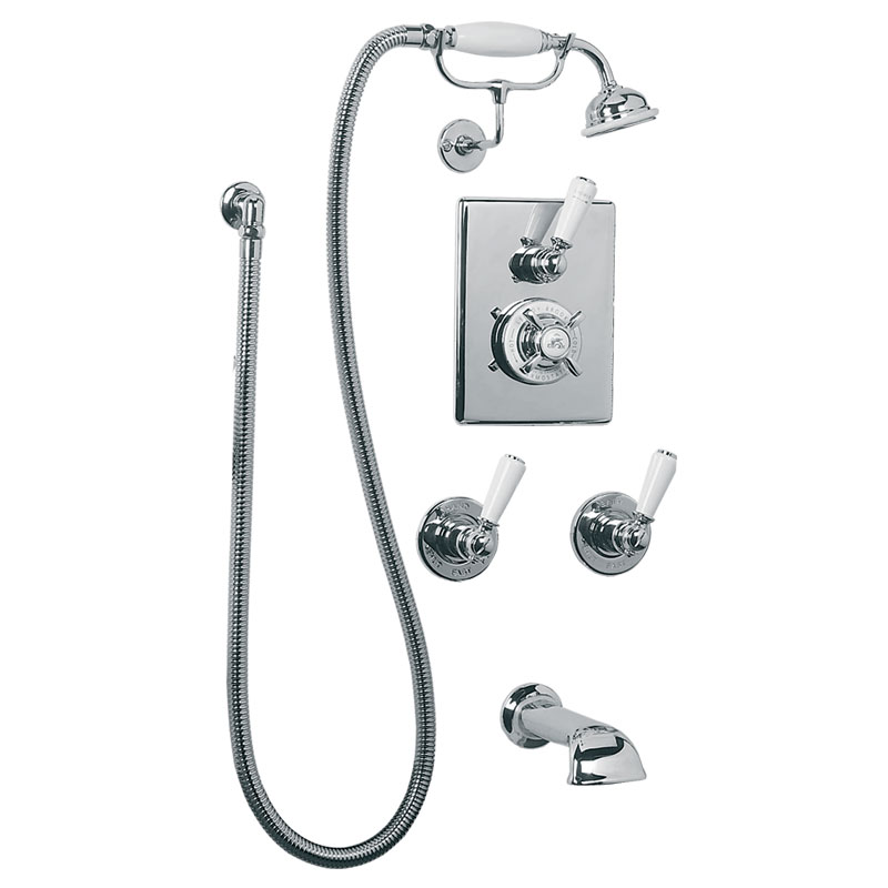 Concealed thermostatic bath and shower valve with Classic handset (order headset separately)