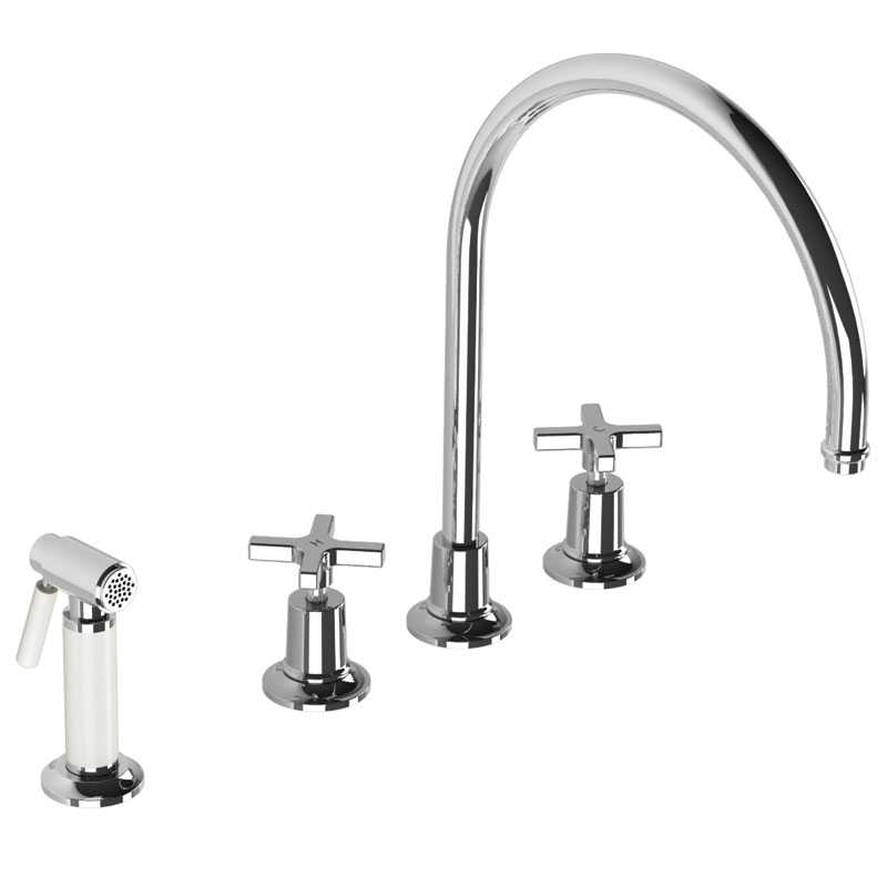 Fleetwood cross handle 4-hole kitchen mixer with white pull-out hand-spray